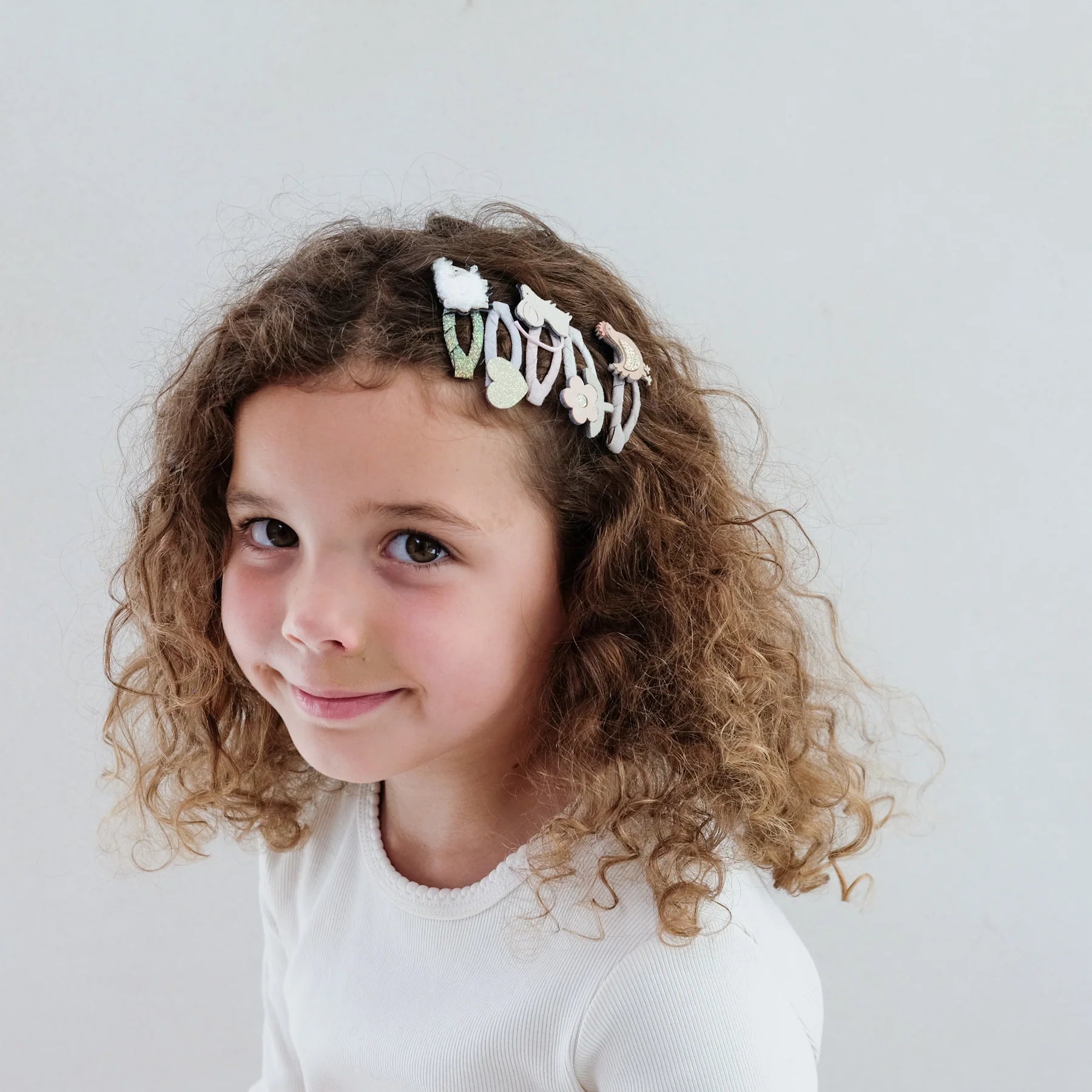 Add a touch of countryside fun with these playful Farm animal mini clic clacs! Featuring adorable designs of a chicken, heart, sheep, flower, and mouse, these cute clips are perfect for brightening up any hairstyle or outfit with a fun farmyard vibe.